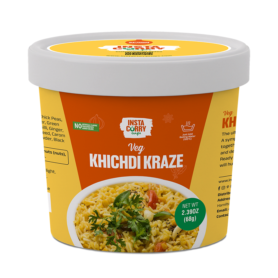 This one-pot Veg Khichdi is a blend of rice, lentils, and spices that gives you deliciously aromatic and healthy Indian comfort food in an all-in-one meal bowl ready in just 5 minutes! You can enjoy the authentic taste of India and get the feel of home away from home, with this instant food. Made with Split Pigeon Peas, Rice & other Condiments, making it protein rich. Specially curated for pooja days, or days you just feel like having something simple and nothing elaborate. Its Spice level is spicy, so make sure you are up for excitement and get ready for a glum day to become happening, once you have this.